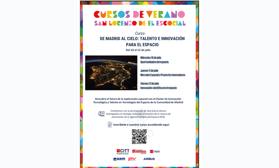 Nos complace anunciar que los próximos 9, 10 y 11 de julio, nuestro CITT-Espacio participará en en los Cursos de Verano de la Complutense en San Lorenzo del Escorial, organizado por la Consejería de Educación de la Comunidad de Madrid, titulado "Soberanía tecnológica y el futuro de Europa: tres sectores estratégicos".